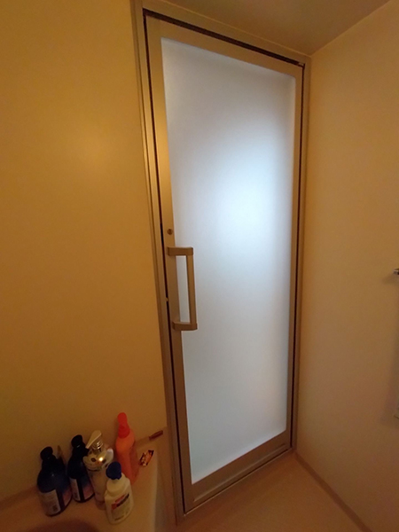 浴室の扉が劣化により甘くなっていて、閉めても勝手に開いてしまうそうです。